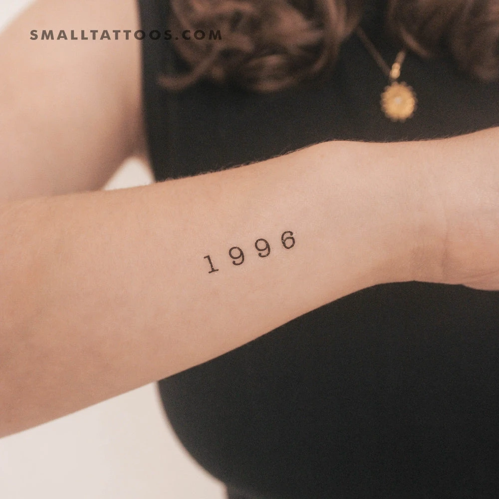 Minimalist typewriter font style 1996 birth year temporary tattoo.