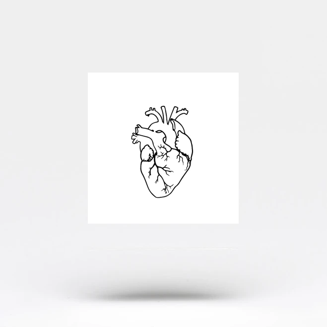 A very modern design, our anatomical heart temporary tattoo is a great option to consider if this style interests you. Our anatomical heart outline fake tattoo depicts the human heart, showcasing its ventricles, atriums, veins, and arteries.Â