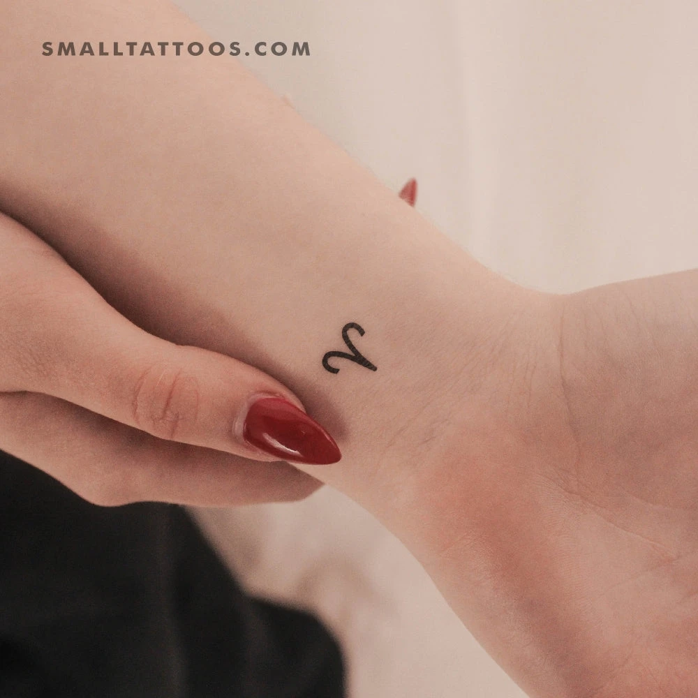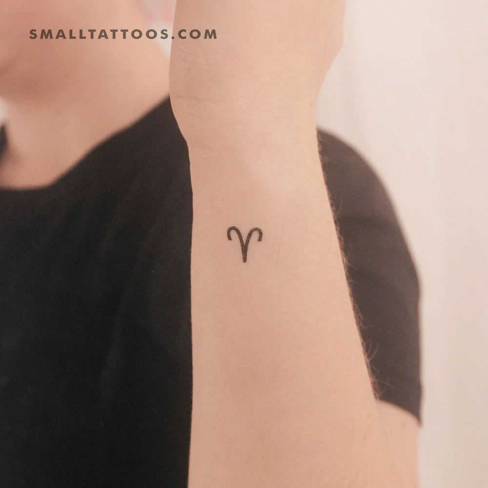 Aries Zodiac symbol temporary tattoo. Aries, Latin for ram, is the first sign of the Zodiac, and the symbol represents the face and horns of this animal. Aries’ ruling planet is Mars.