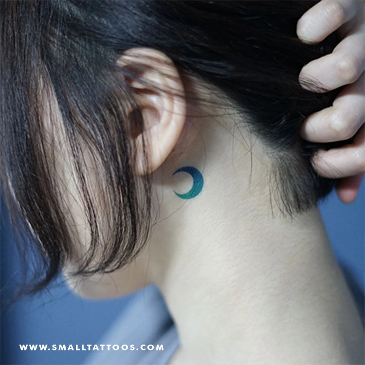 Blue and green gradient crescent moon temporary tattoo, designed by tattoo artist Zihee.