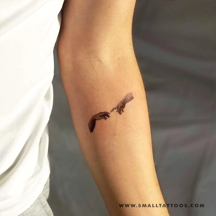 Temporary tattoos of the hands featured on Michelangelo’s ‘The Creation of Adam.’
