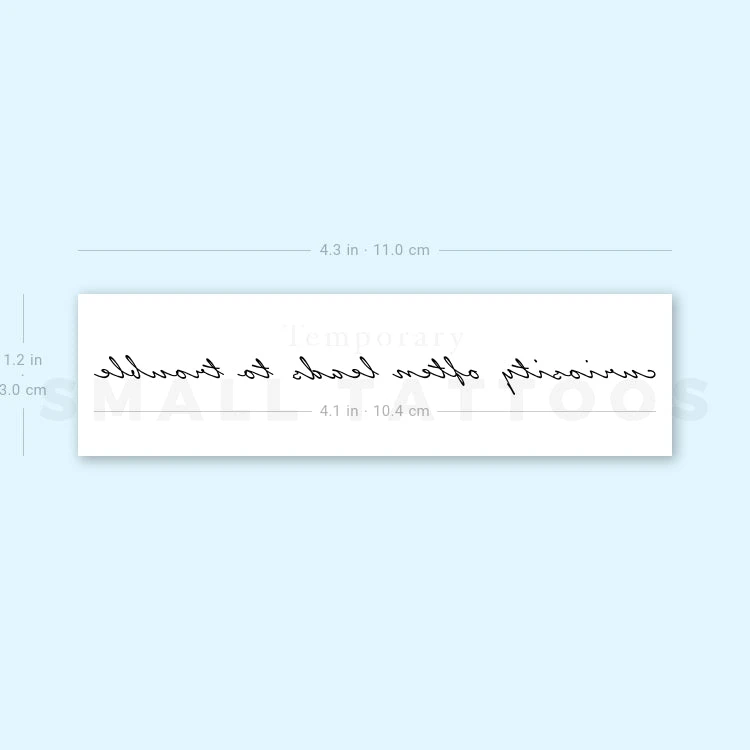 Handwritten style “curiosity often leads to trouble” temporary tattoo. The quote is spoken by Alice in Disney’s 1951 animated musical fantasy-adventure film, Alice in Wonderland.
