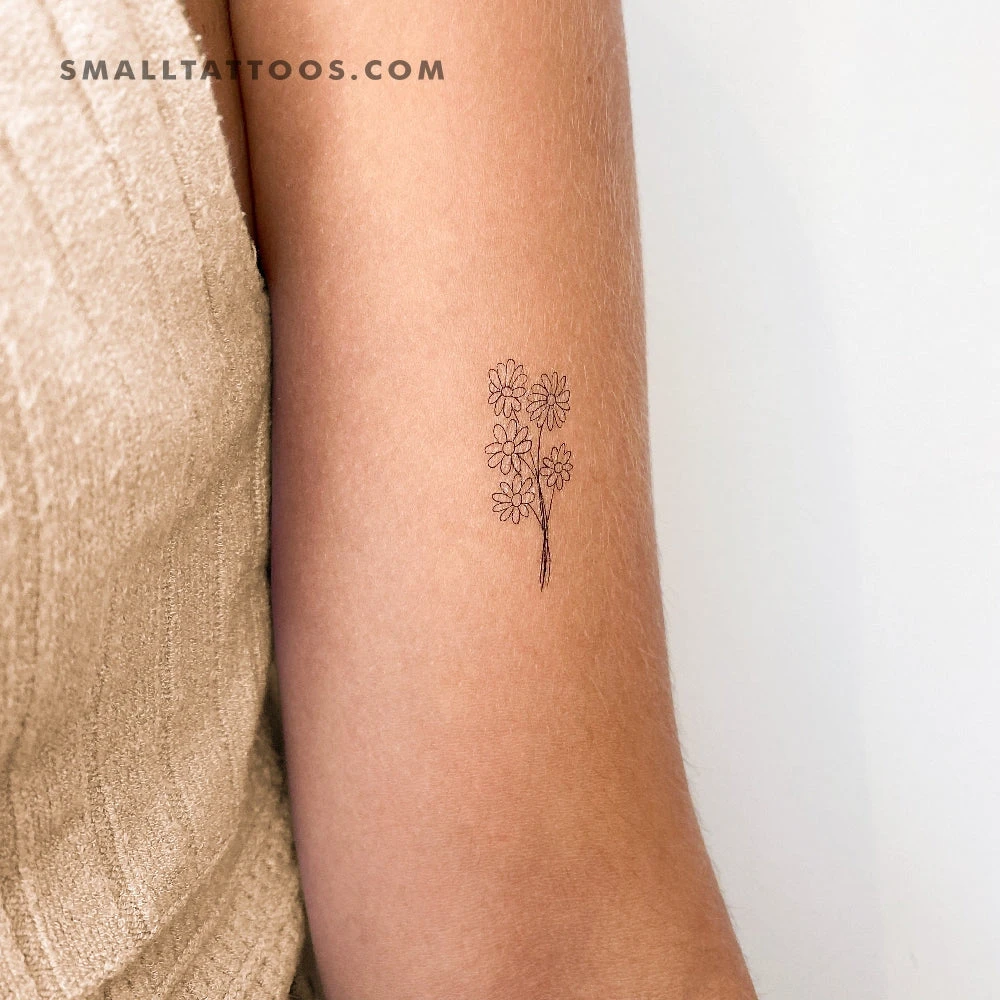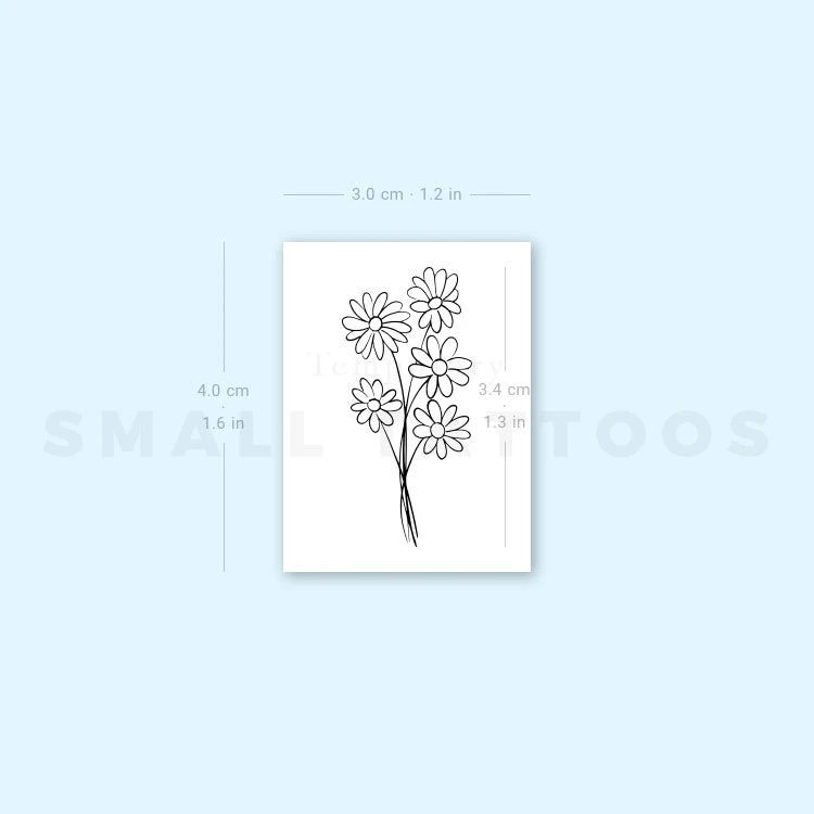 Daisy Flower Bouquet Temporary Tattoo (Set Of 3)