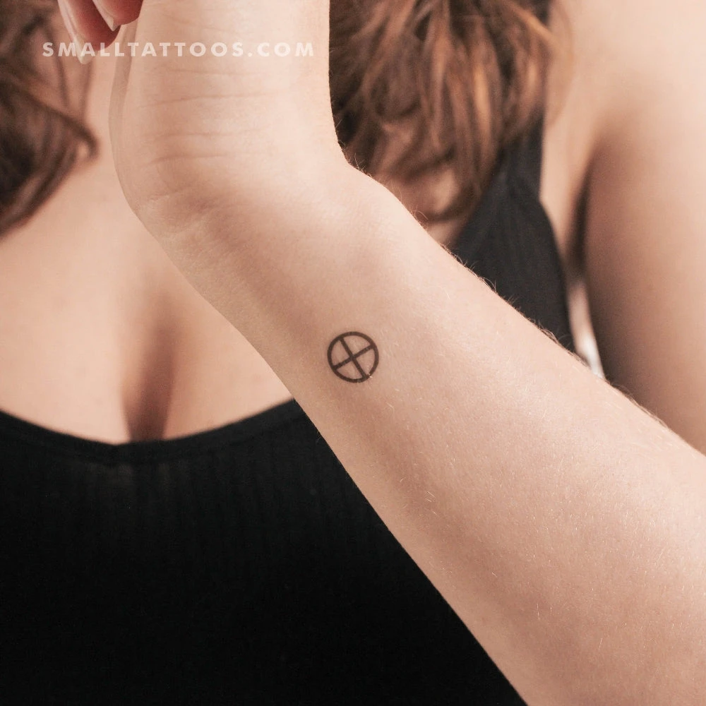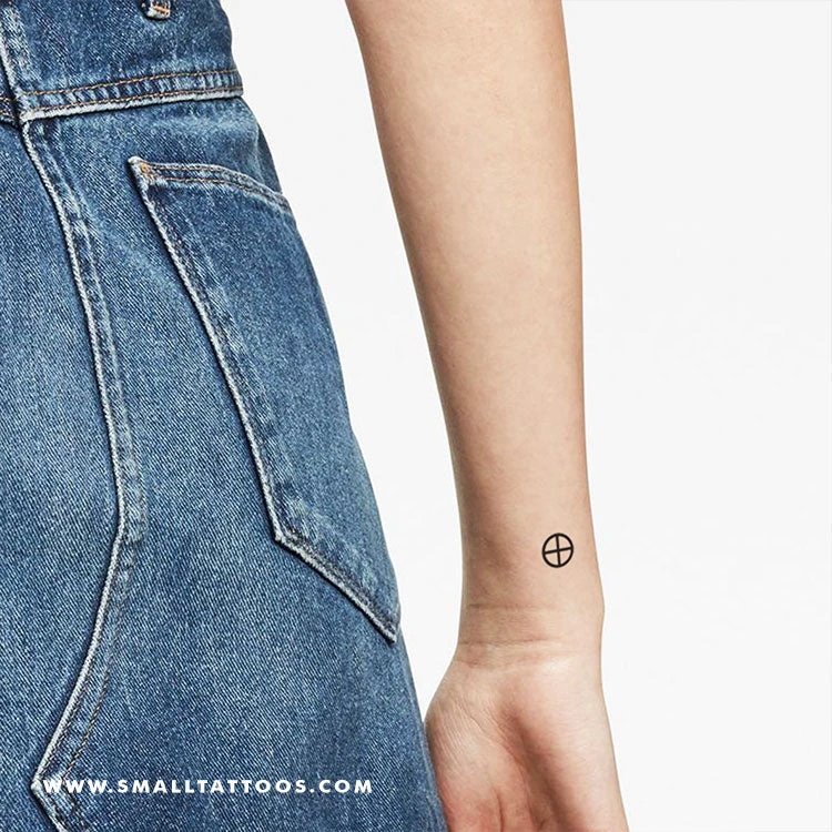 Earth planetary symbol temporary tattoo. The symbol represents a globe with equator and a meridian.