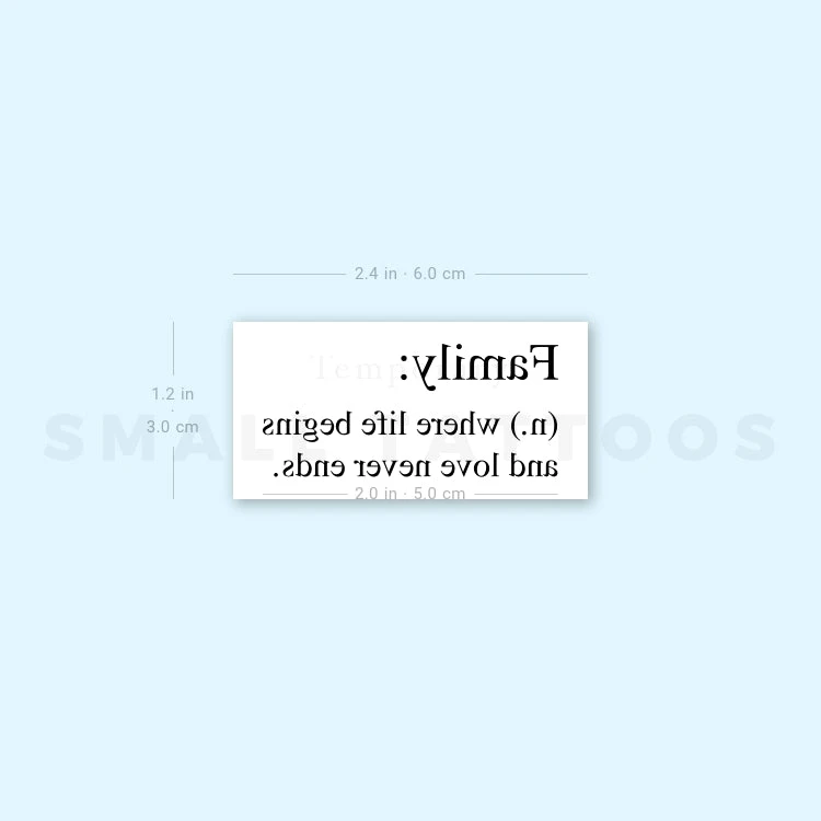 ‘Family: Where life begins and love never ends’ dictionary meaning temporary tattoo.