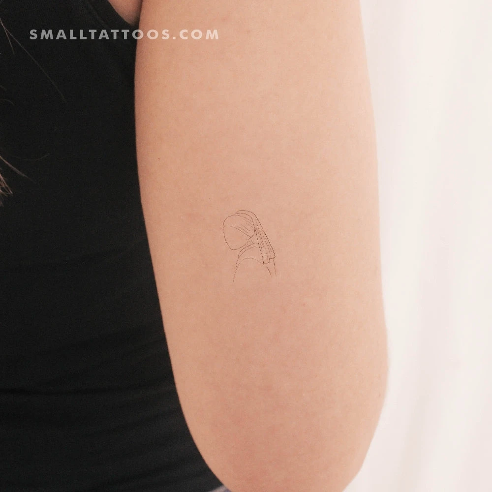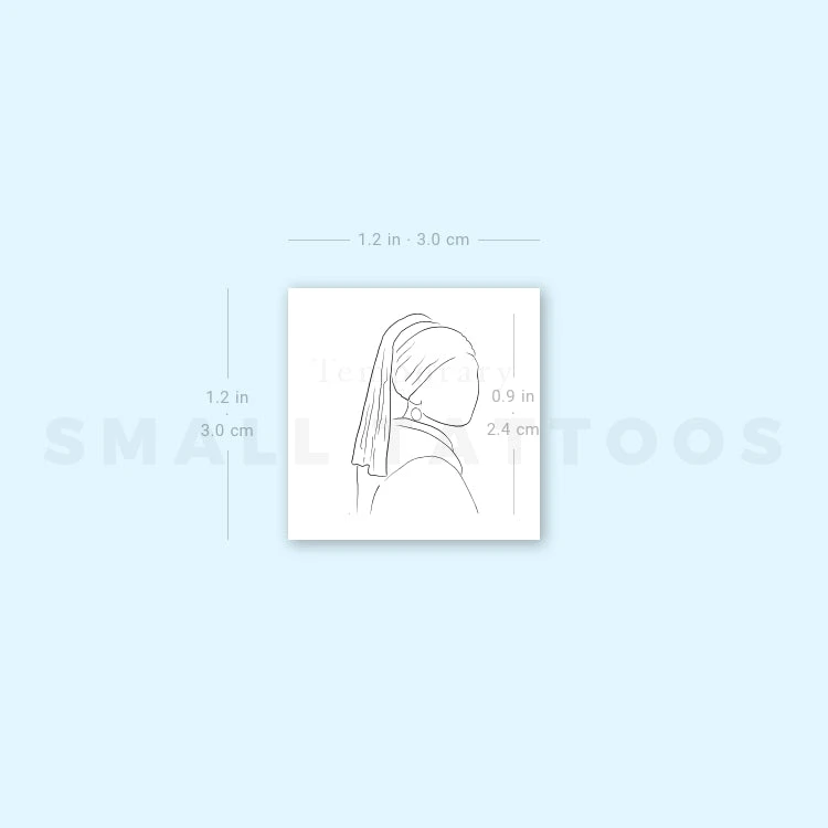 Fine line style Johannes Vermeer’s ‘Girl with a Pearl Earring’ temporary tattoo.