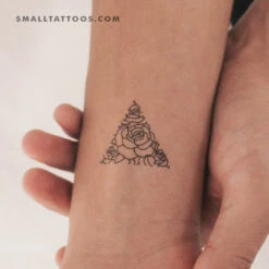 Fine line style rose triangle temporary tattoo. This elegant floral design looks gorgeous on your skin.
