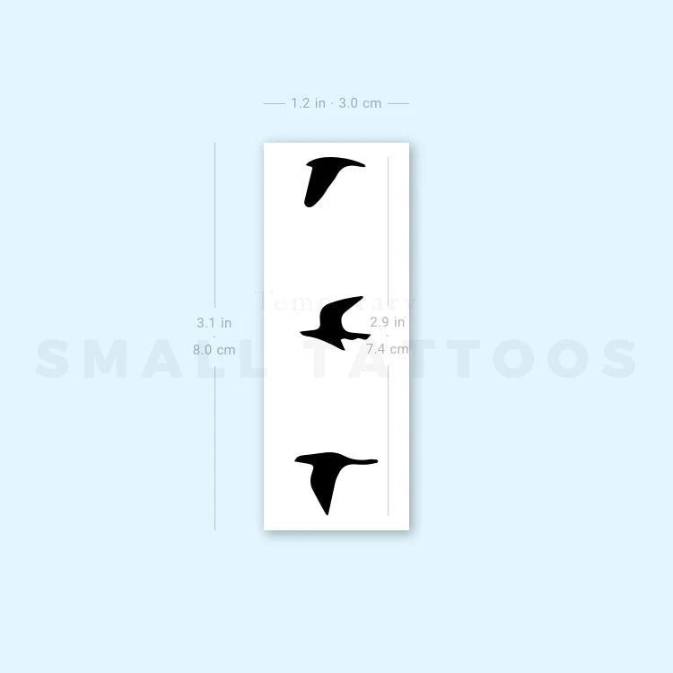 Three flying birds temporary tattoo. You can use all three designs together or separately.