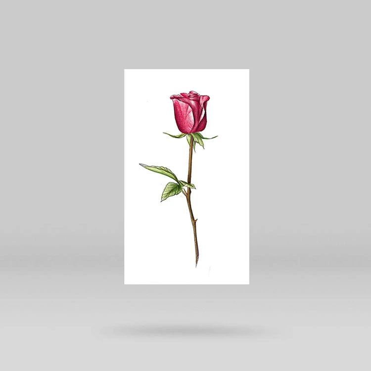 Illustrative style red rose temporary tattoo, designed by professional tattoo artist Mini Lau.