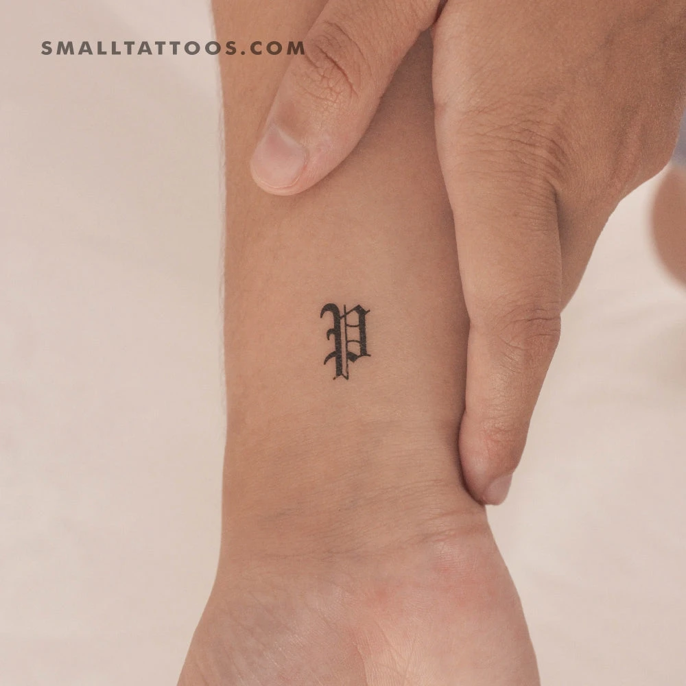 Gothic Style Uppercase P Letter Temporary Tattoo (Set Of 3)