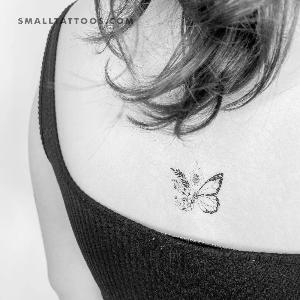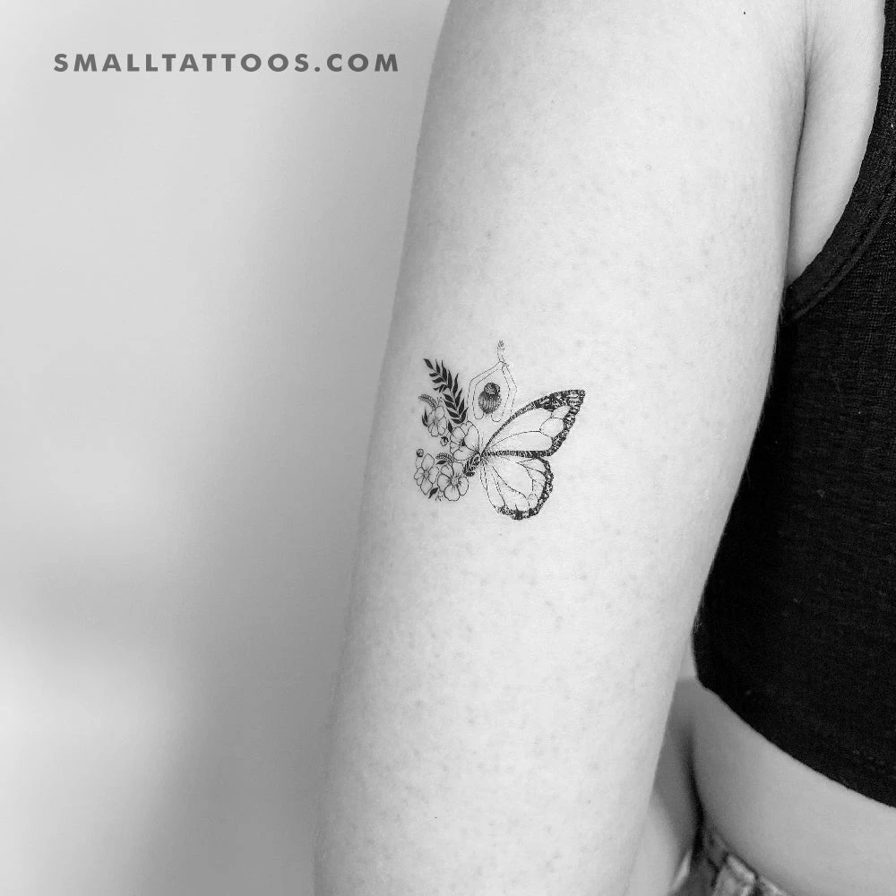 Small illustrative style half floral butterfly woman temporary tattoo, designed by Malak Aboyosif.