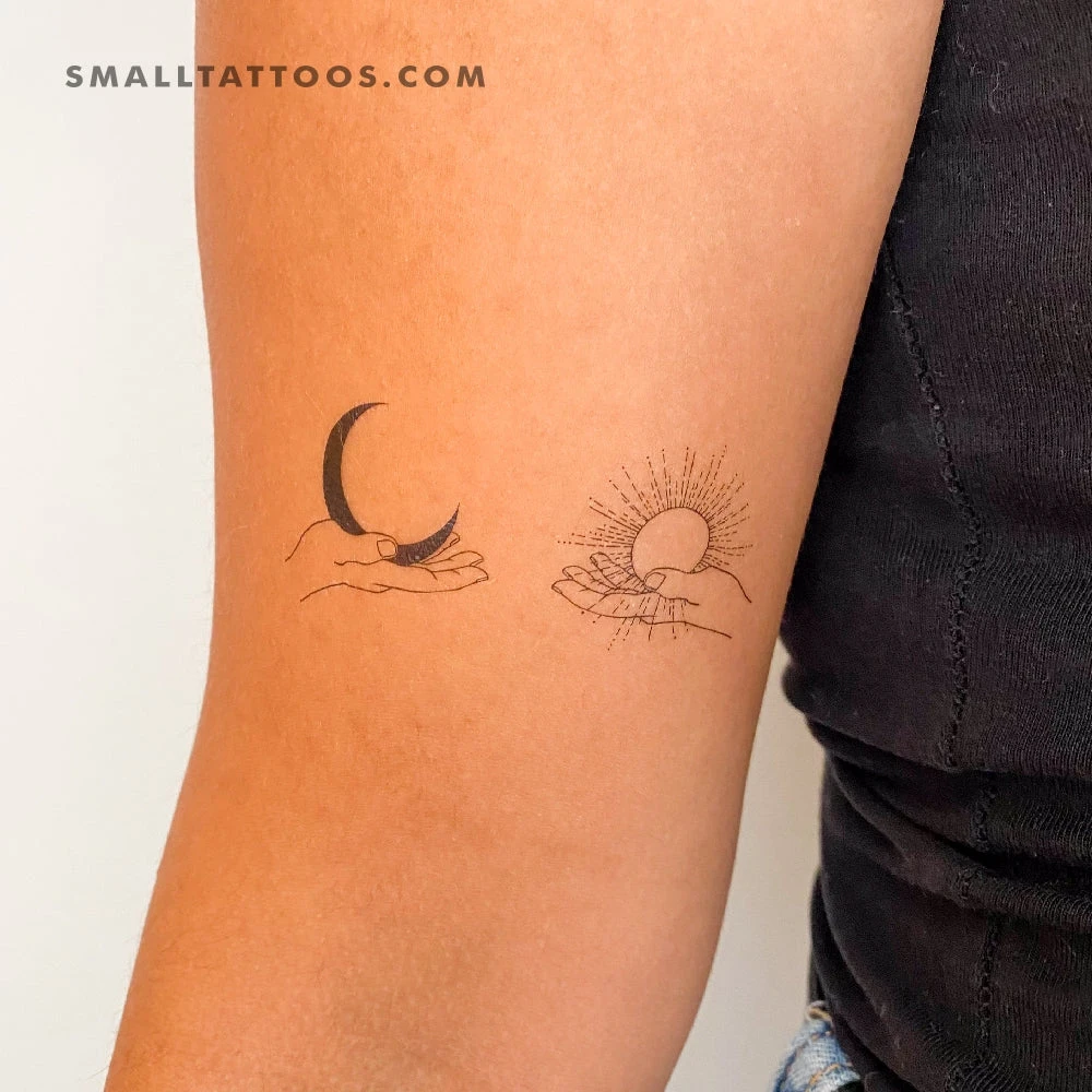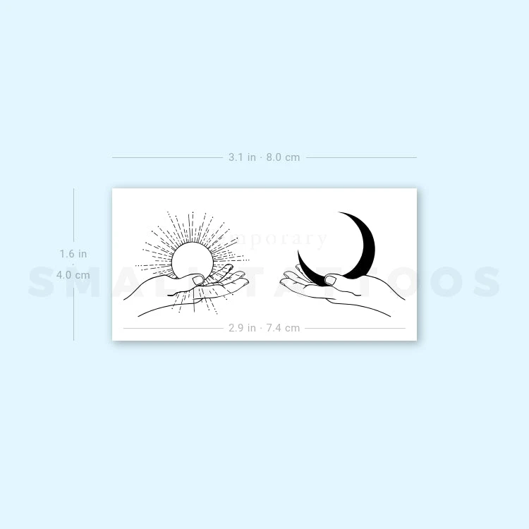 Hands Holding Moon And Sun Temporary Tattoo – Set Of 3