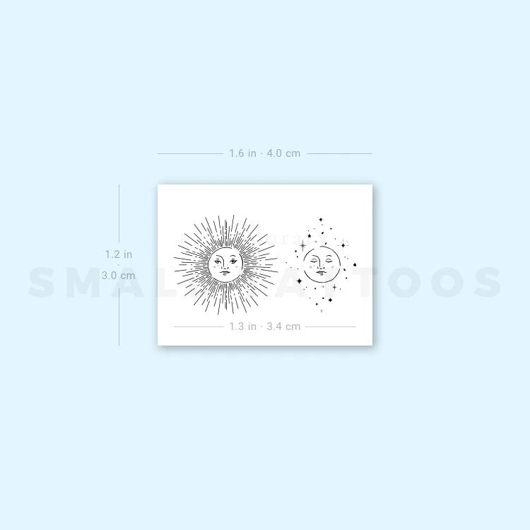 Happy Sun, Sleepy Moon Temporary Tattoo (Set Of 3)