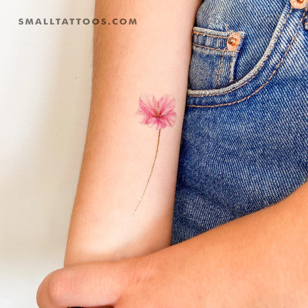 Illustrative style red hibiscus temporary tattoo, designed by professional tattoo artist Mini Lau.