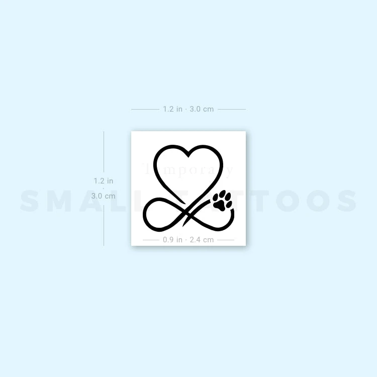 Infinity Heart And Dog Paw Print Temporary Tattoo (Set Of 3)