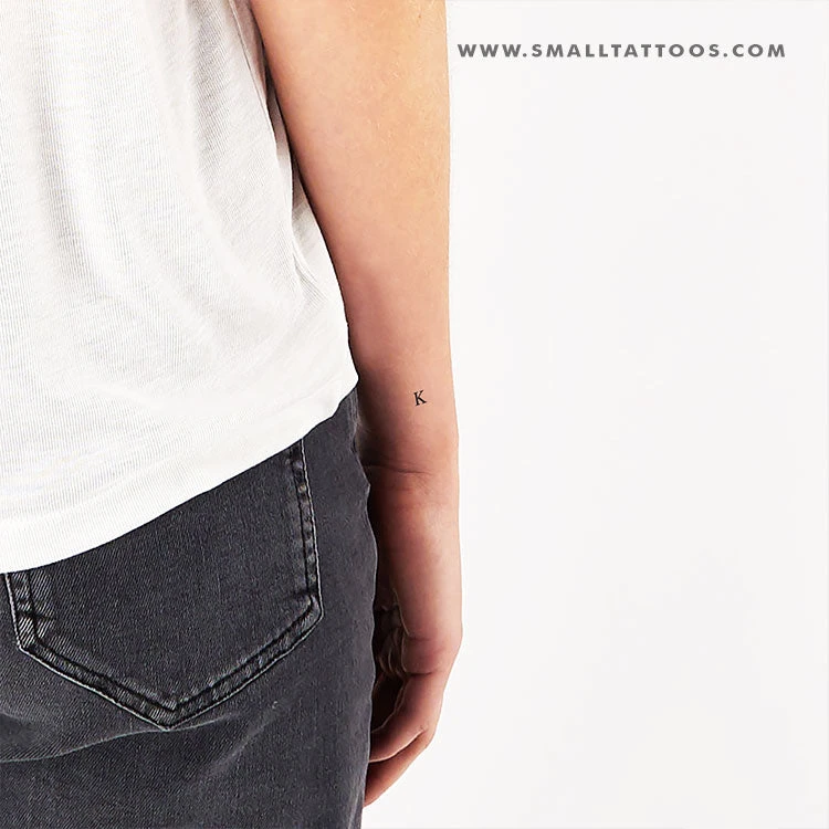 The tattoos with the strongest meanings are often the simplest ones. Our ‘k’ uppercase serif letter temporary tattoo is a great example of how a simple letter can carry so much meaning behind it. Perhaps you’re using this letter to represent yourself, wear it proudly, and be your best self.