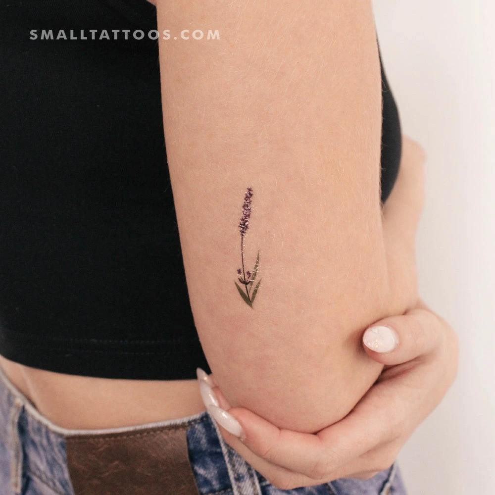 Zihee, a talented tattoo artist from Seoul, North Korea, is known for her watercolor style and nature-inspired designs. This lavender temporary tattoo by Zihee is a perfect example of her beloved style.
