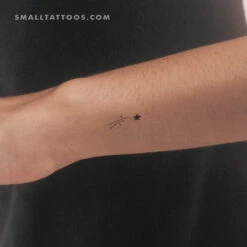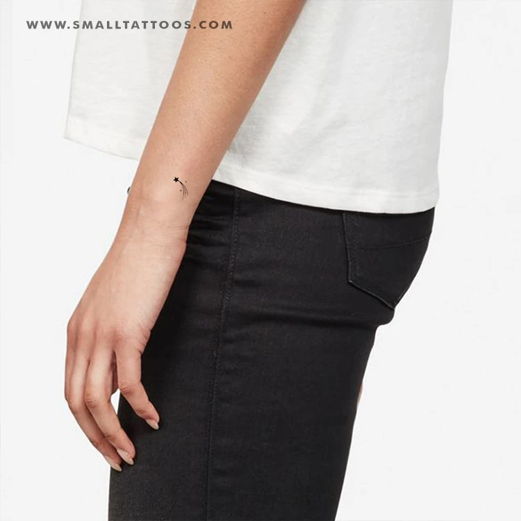 A shooting star is a meteor that streaked across the sky, usually seen as a brief flash of light. It has long been associated with wishing and hopes, which is one of the most common reasons people choose our sustainable shooting star fake tattoo.