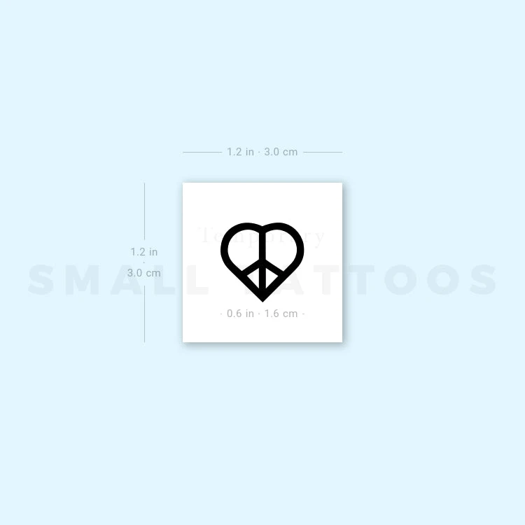 Heart shaped peace symbol temporary tattoo, as a love & peace symbol.