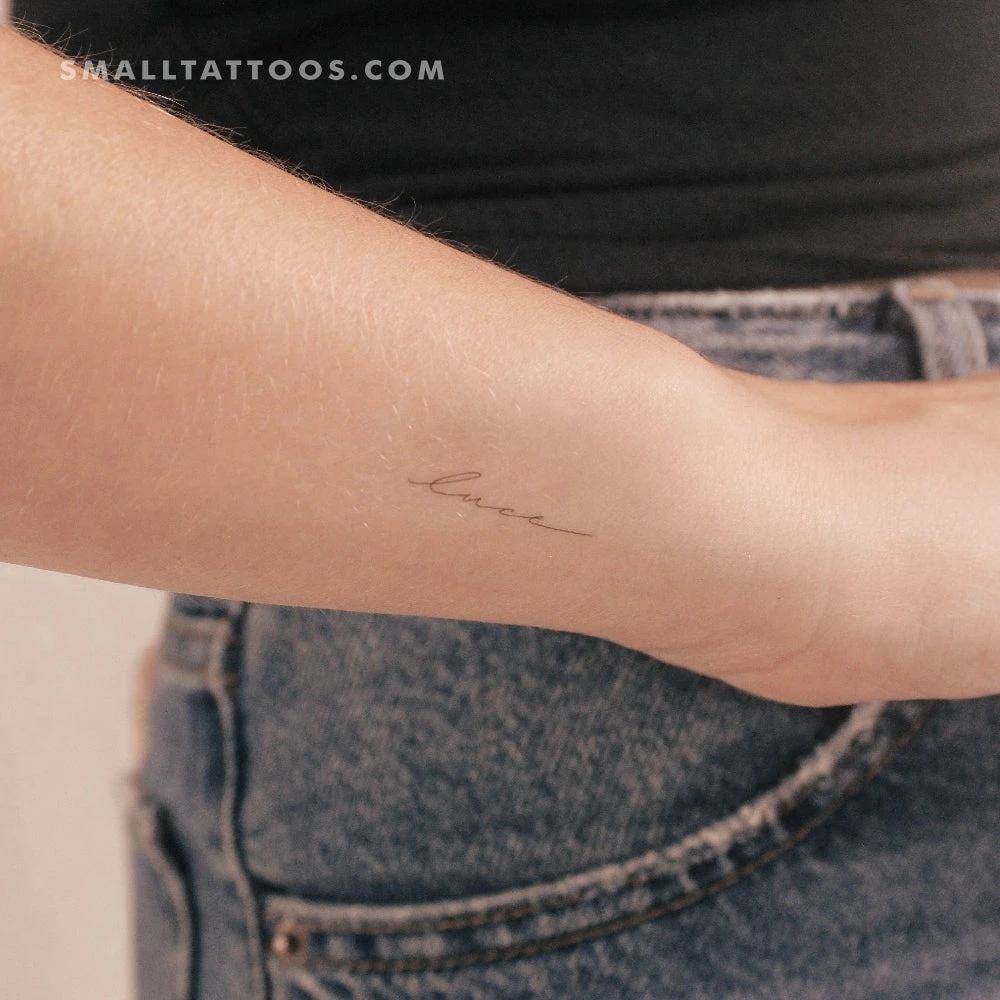‘Luce’Â temporary tattoo, handwritten in a beautiful script by Jakenowicz itself.