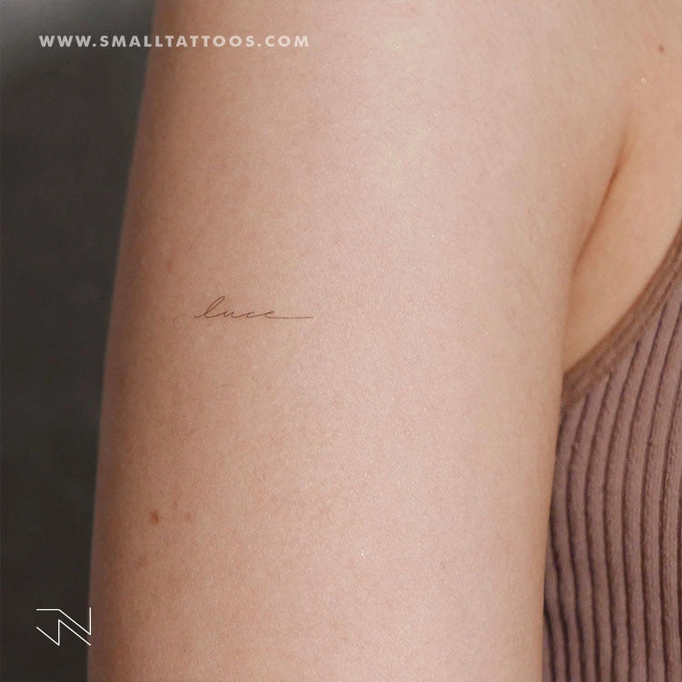 Word tattoos are a popular way to show your personality, beliefs, or values. If you’re looking for a versatile design with a wide range of meanings, we suggest this ‘luce’ temporary tattoo by Jakenowicz.