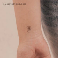 Uppercase serif M letter temporary tattoo.