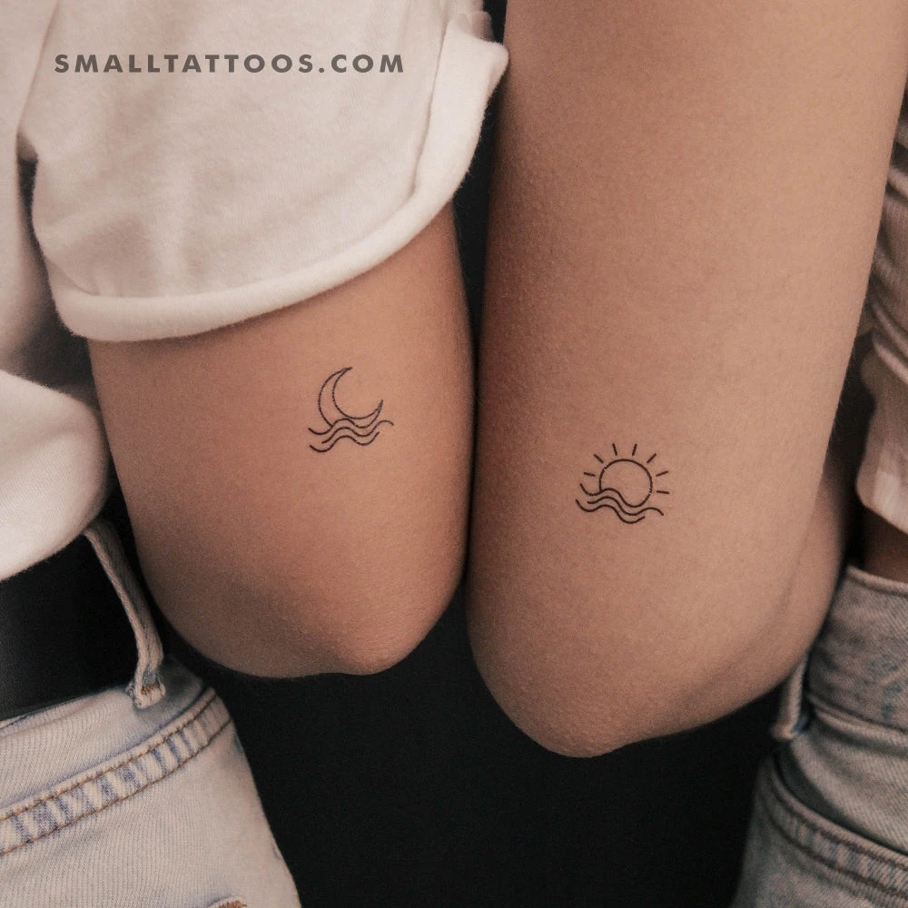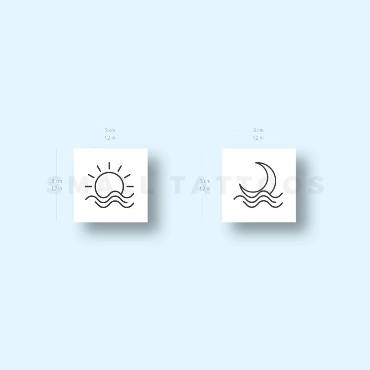 Matching Sea Sunrise And Sea Moonrise Temporary Tattoos (Set Of 3+3)
