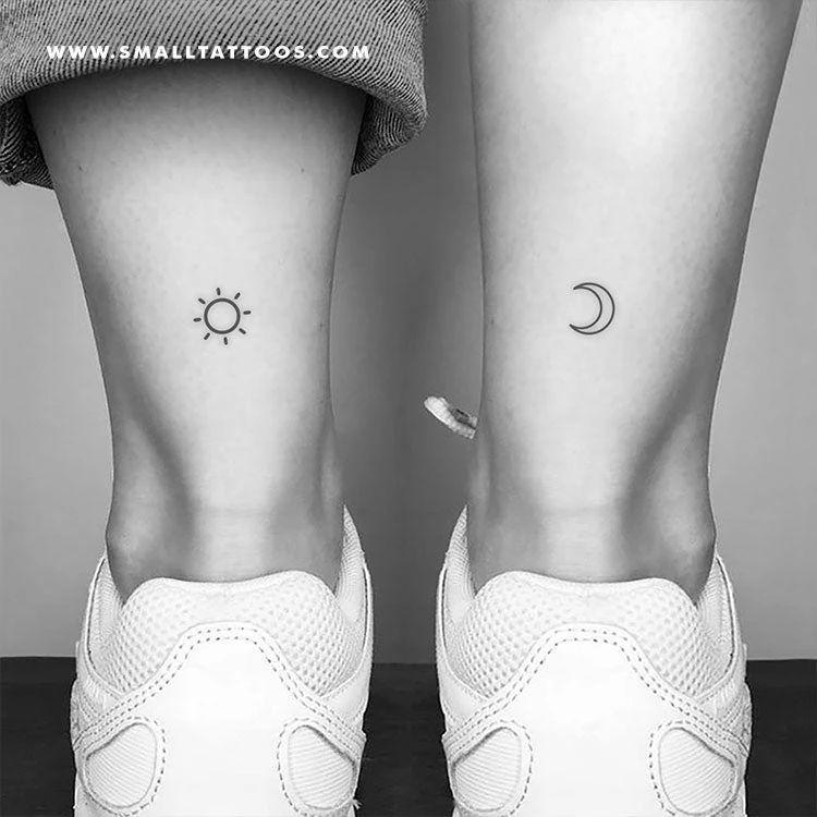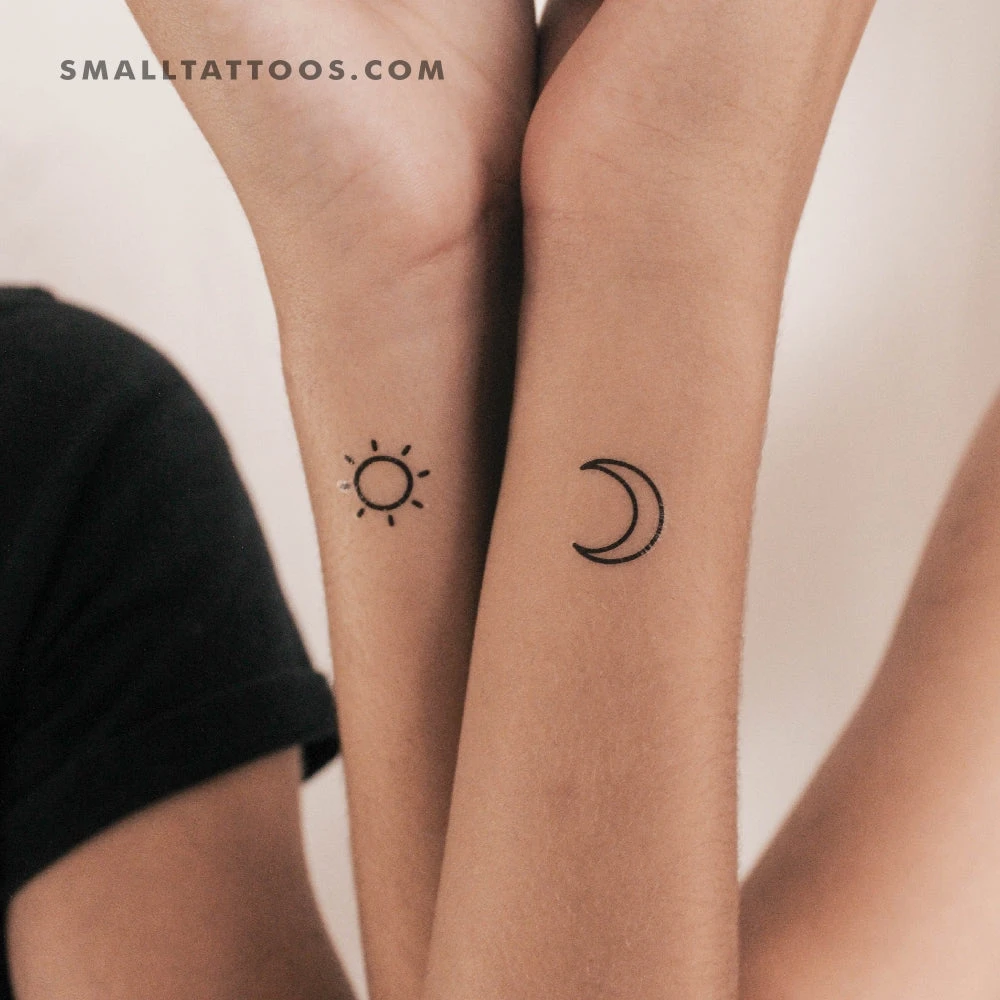 Matching crescent moon and sun temporary tattoos. Simple yet elegant designs, perfect for best friends and siblings.