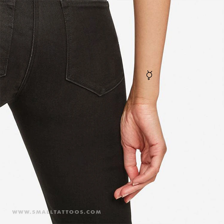 Mercury planetary symbol temporary tattoo. The symbol represents Mercury’s winged helmet and caduceus.