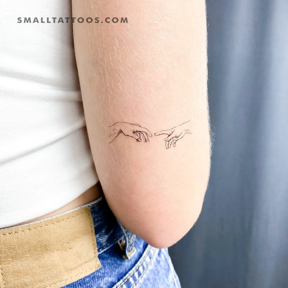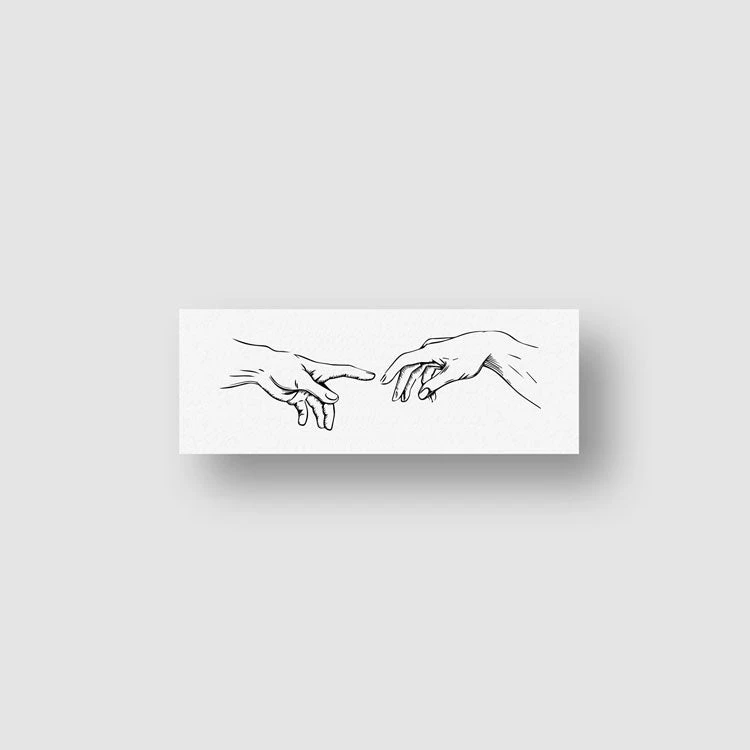 The minimalist creation of Adam hands temporary tattoo arrives in a set of three, which allows you to try out different placements before getting a permanent tattoo. Share a design with a friend or change your style to suit your mood.