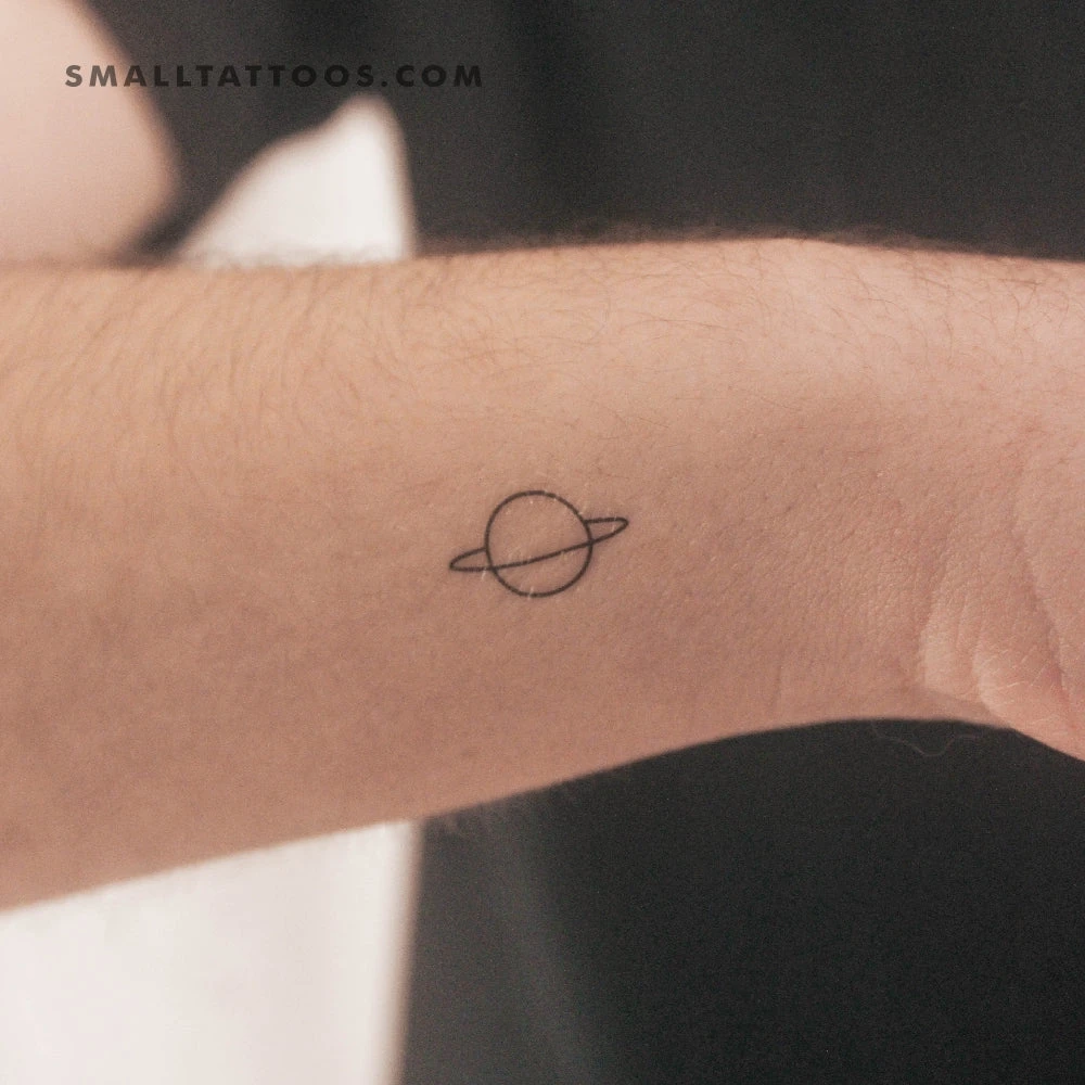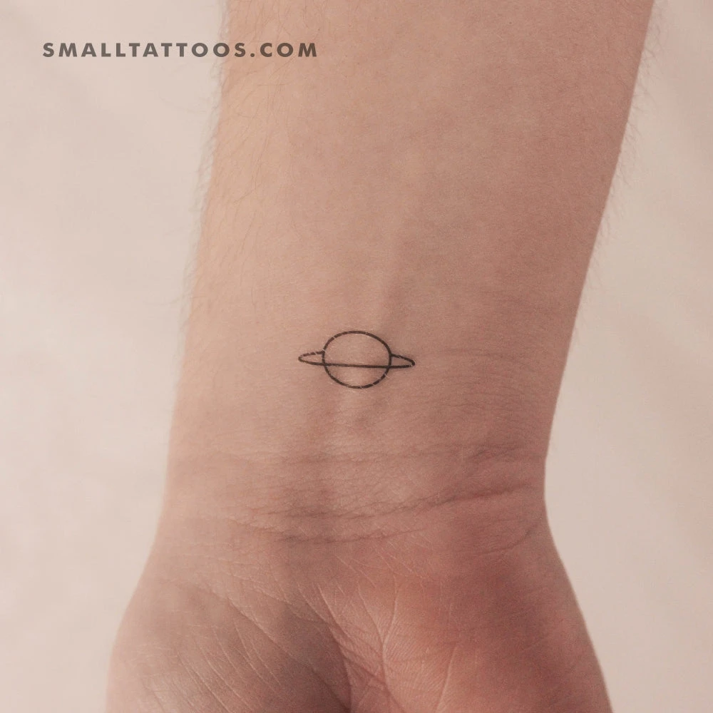 If you’re someone who prefers a simple design over an elaborate one, you’ll love our minimalist Saturn temporary tattoo. Created using eco-friendly black soy ink, this design features the outline of the planet with a single fine line around it.