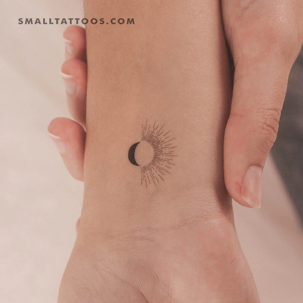Minimalist sun and moon temporary tattoo.