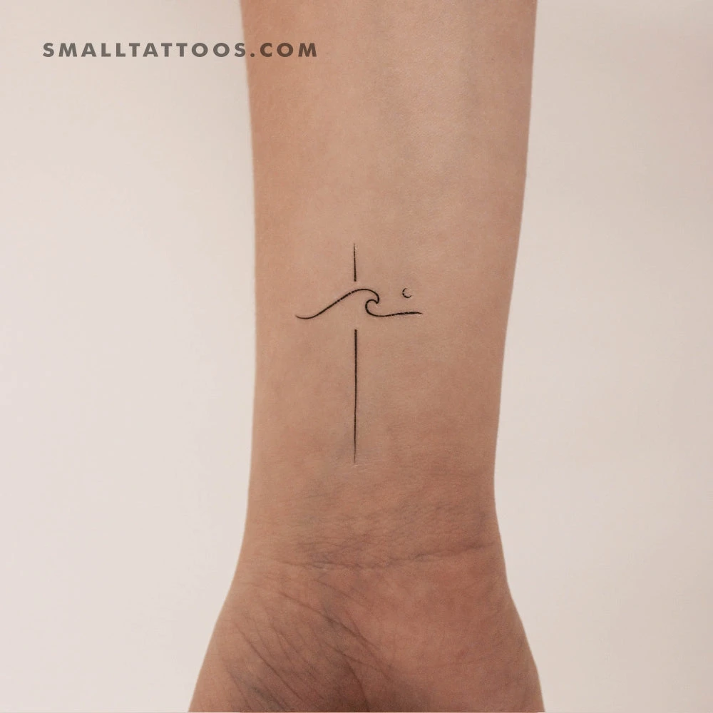 Minimalist Wave Cross Temporary Tattoo (Set Of 3)