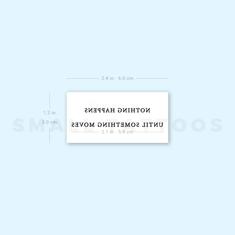 Serif style uppercase ‘nothing happens until something moves’ temporary tattoo.