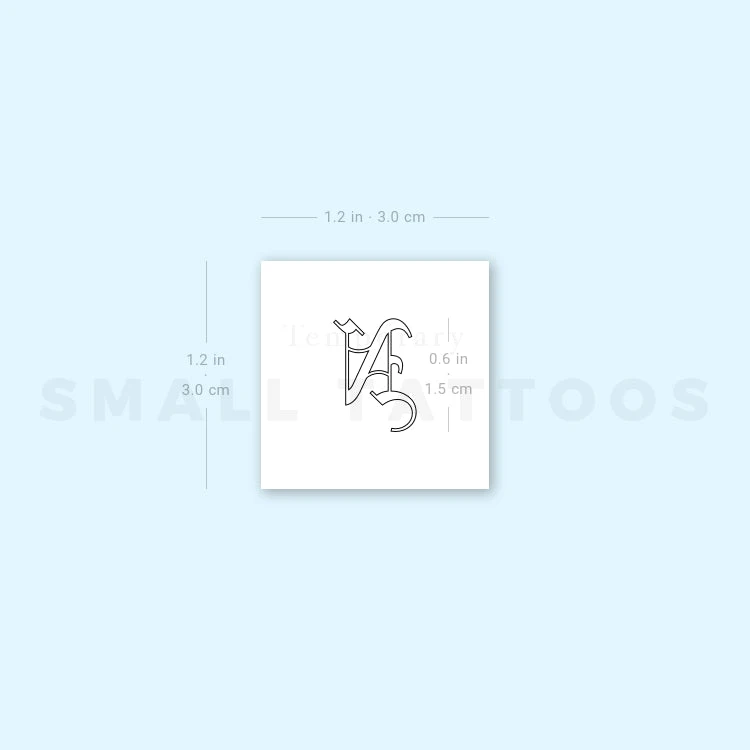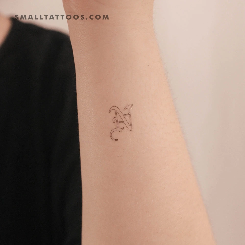 Old English N Letter Temporary Tattoo (Set Of 3)