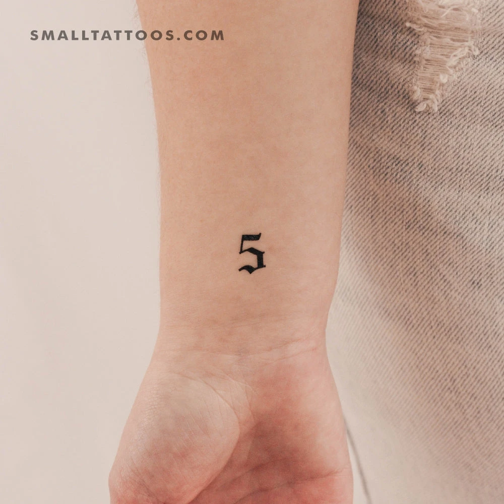 Old English Number 5 Temporary Tattoo (Set Of 3)