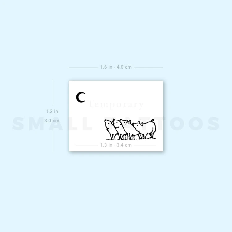 Piglets And The Moon Temporary Tattoo – Set Of 3