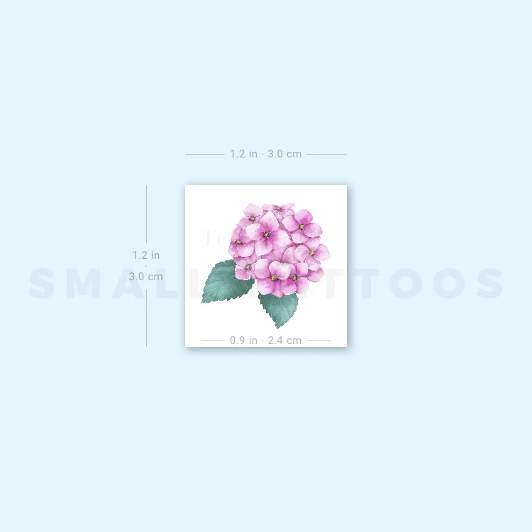 Pink Hydrangea Temporary Tattoo (Set Of 3)