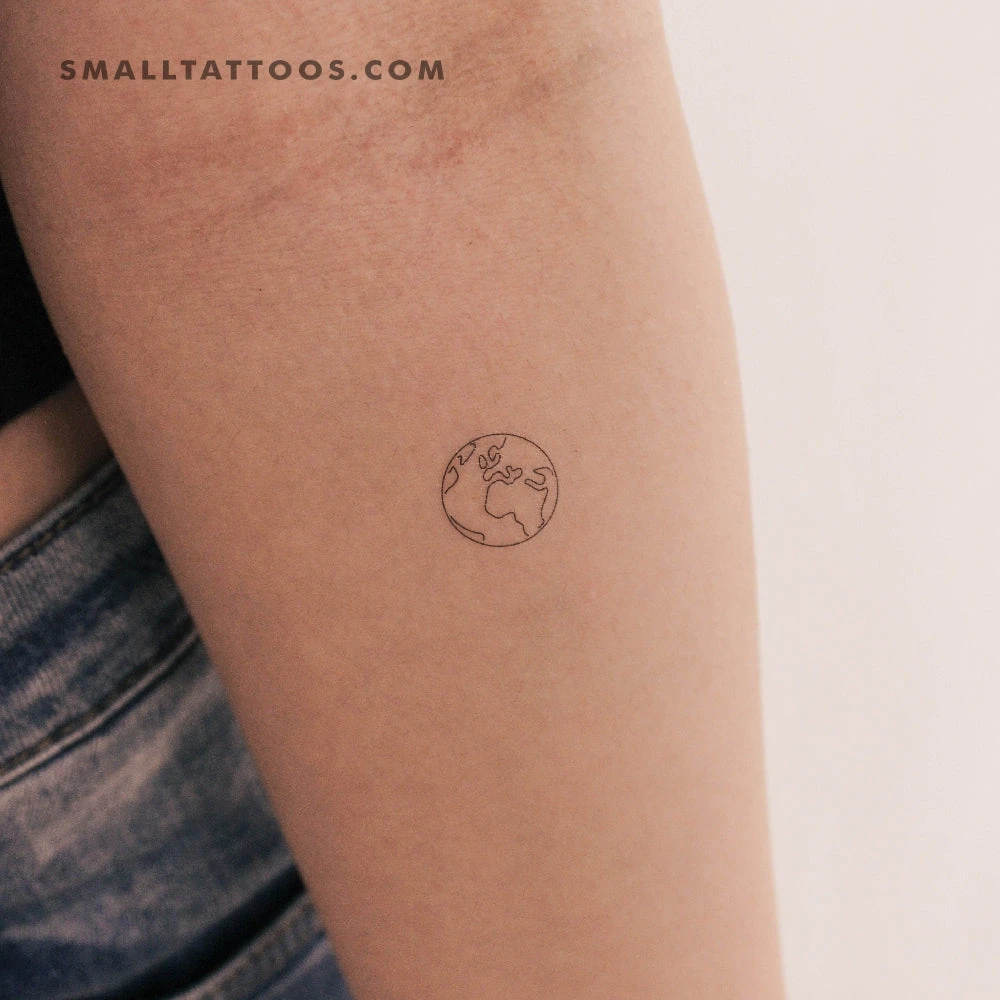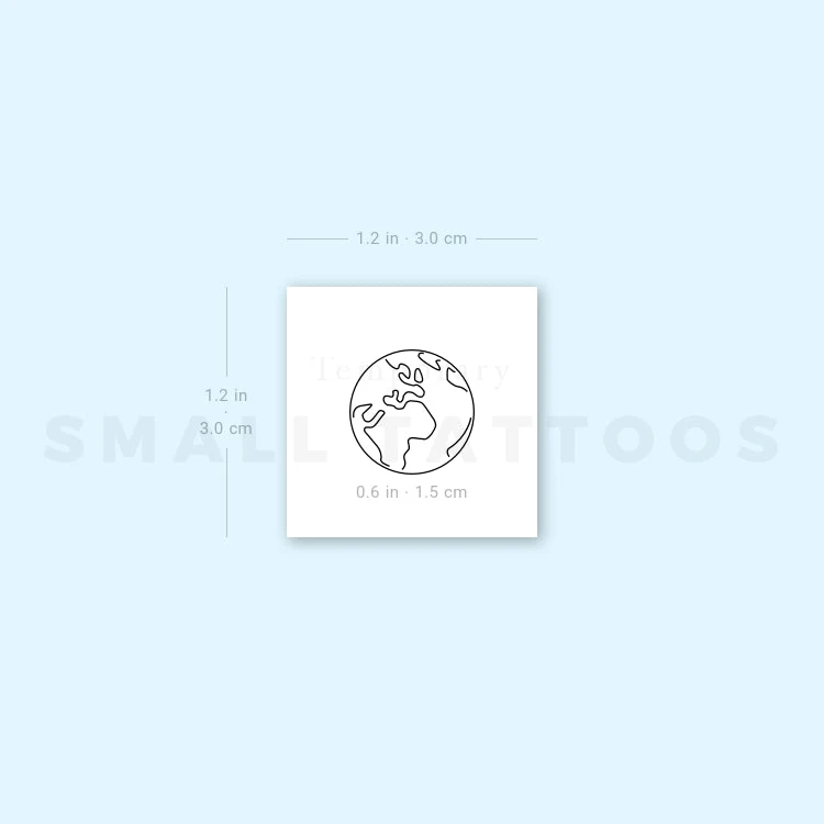 Fine line planet earth temporary tattoo.