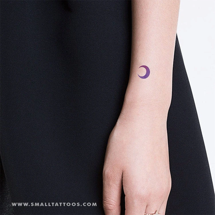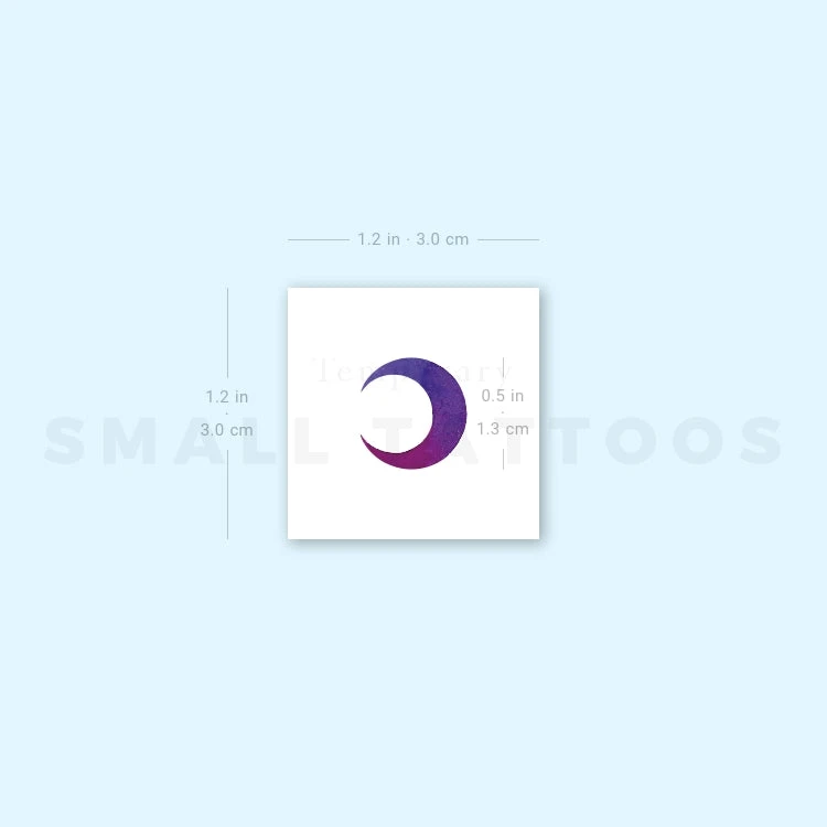 Purple and pink gradient crescent moon temporary tattoo, designed by tattoo artist Zihee.