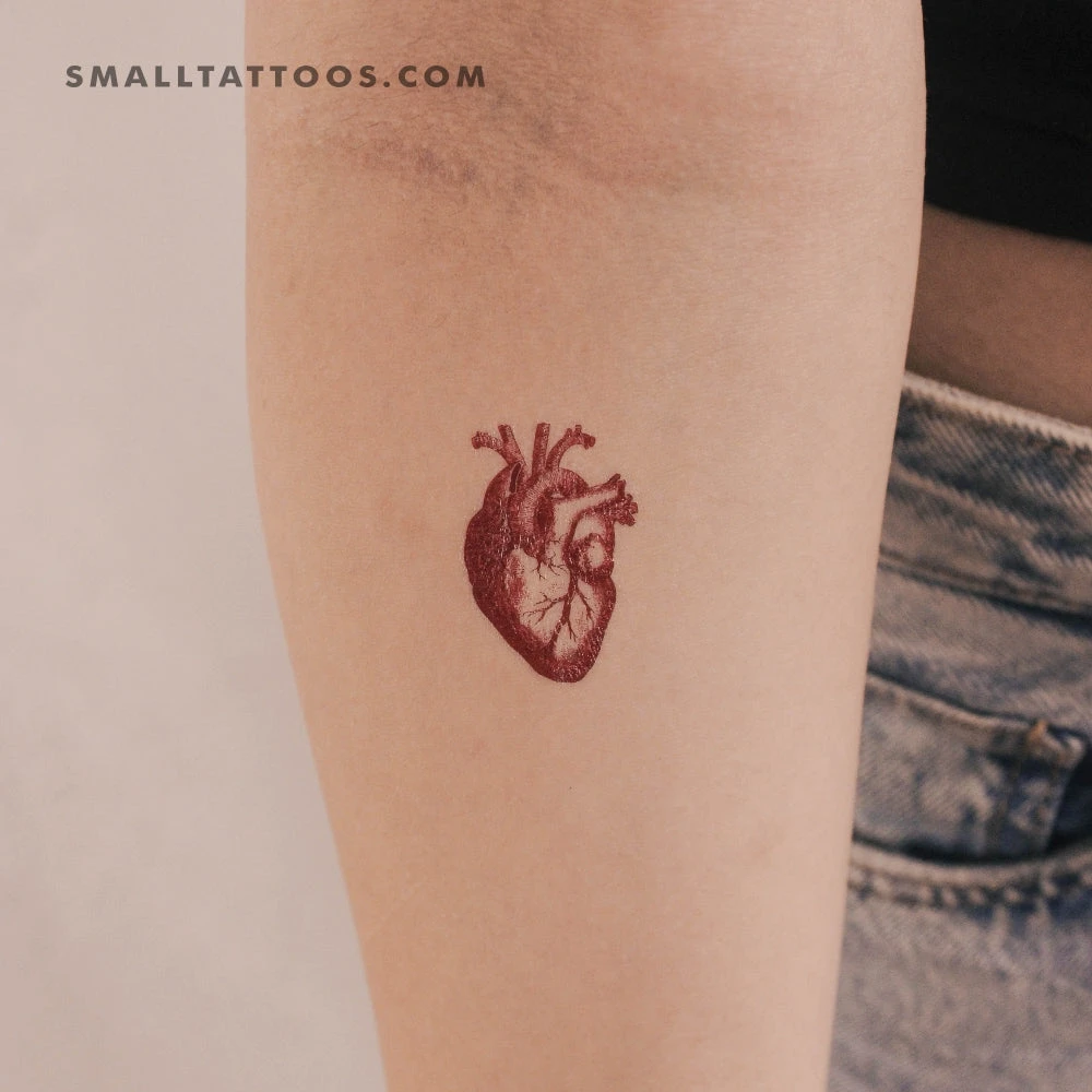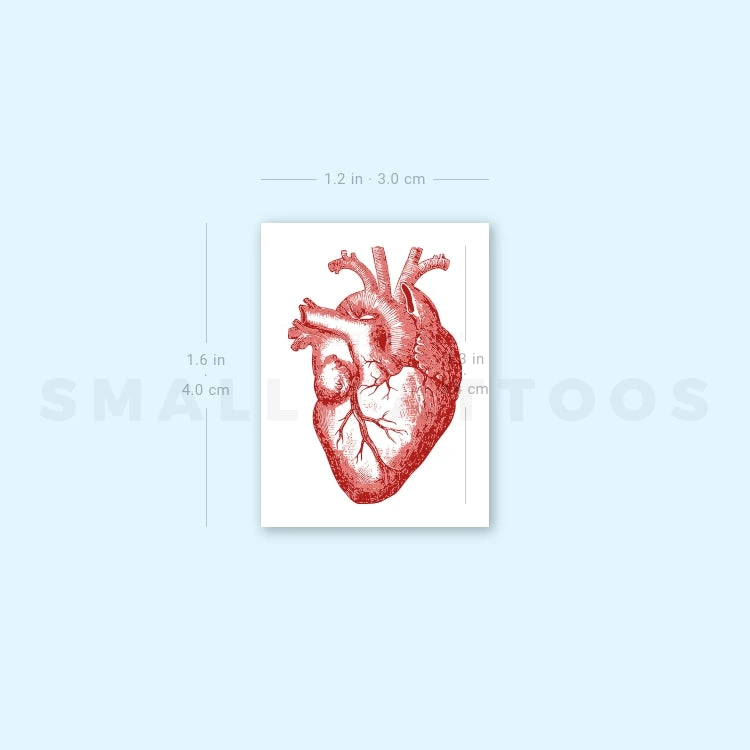 Red Anatomical Heart Temporary Tattoo (Set Of 3)