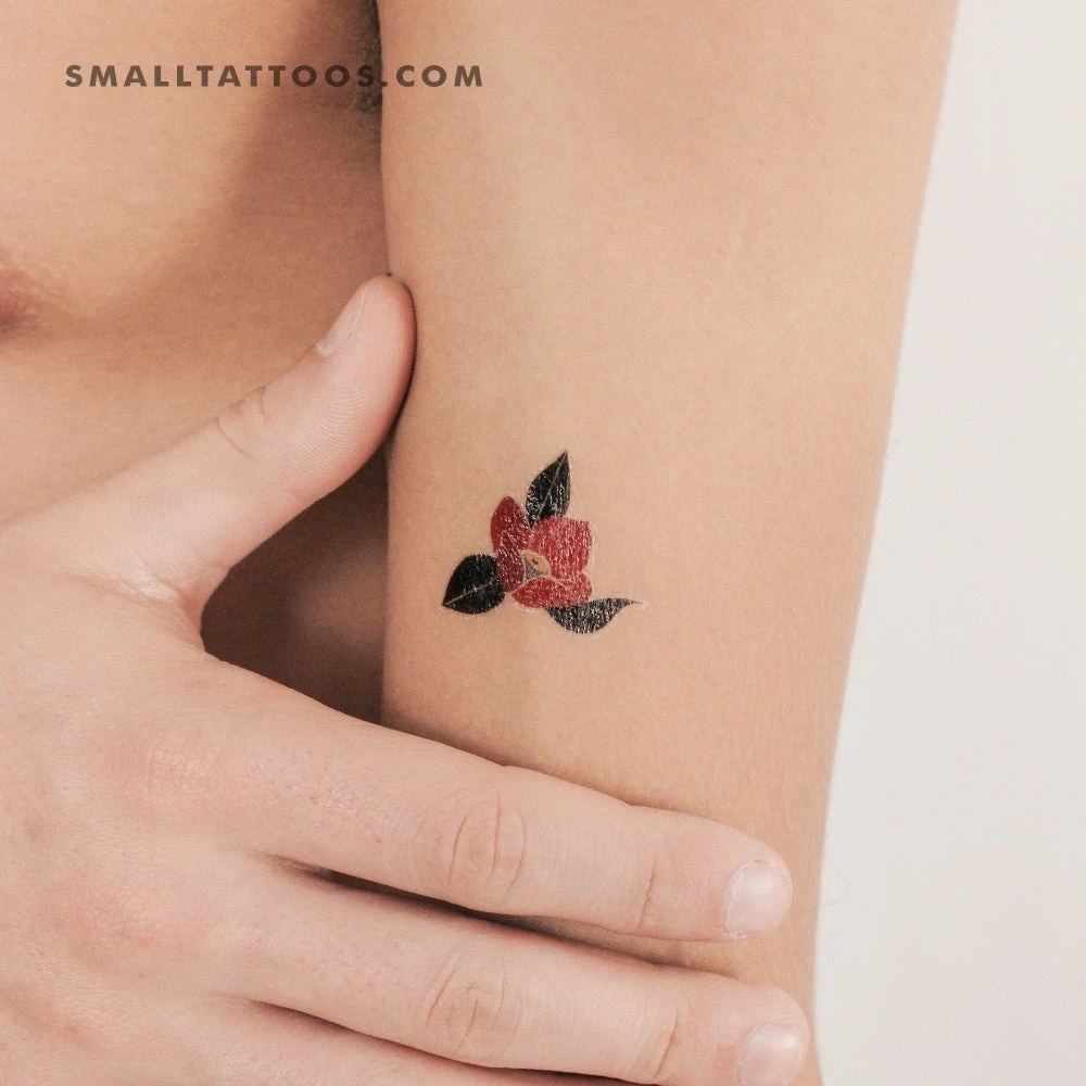 Red Camellia Temporary Tattoo By Zihee (Set Of 3)