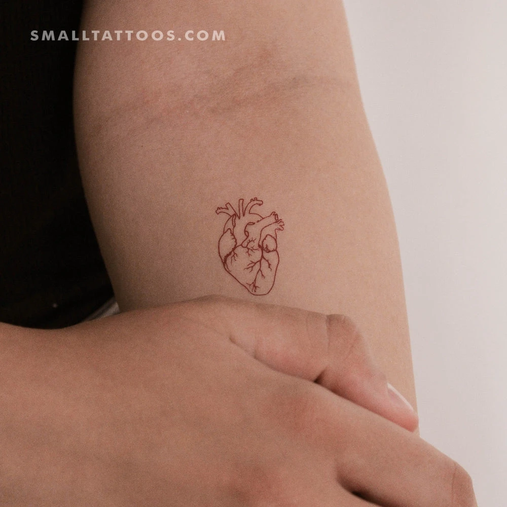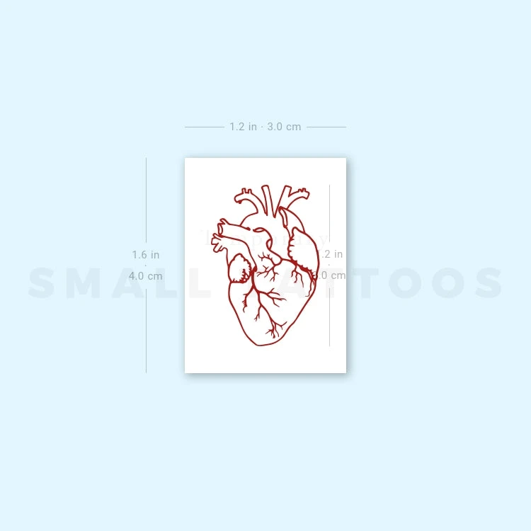 Looking for an alternative to the ubiquitous heart tattoo? A modern and popular alternative example is seen in our red anatomical heart temporary tattoo.