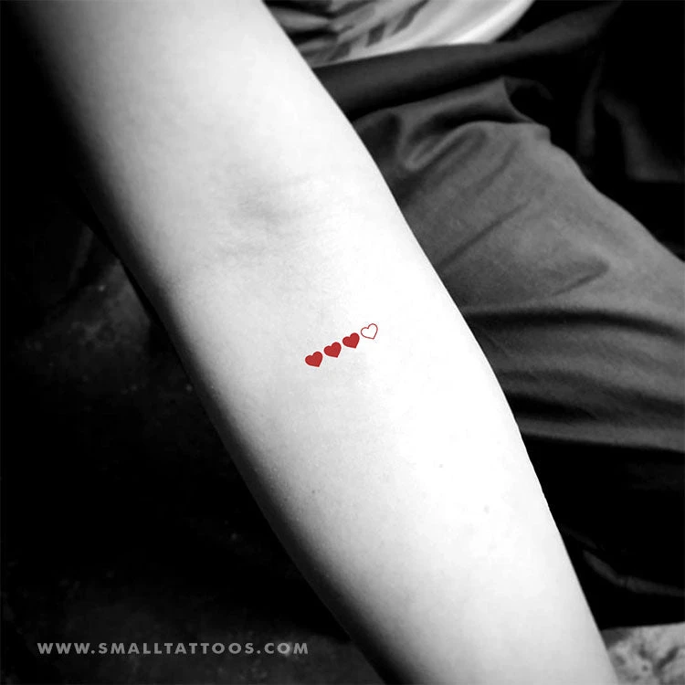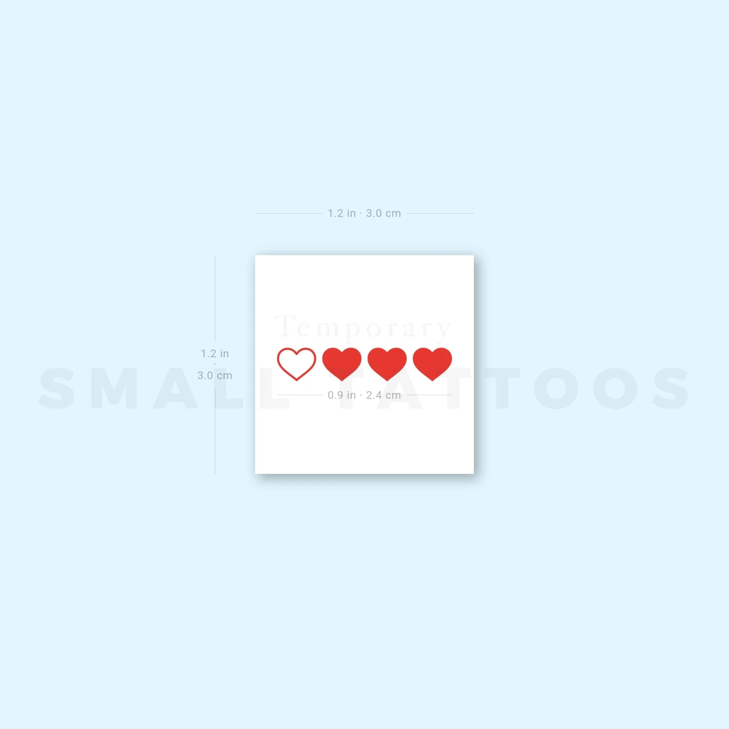 Red Loading Hearts Temporary Tattoo (Set Of 3)