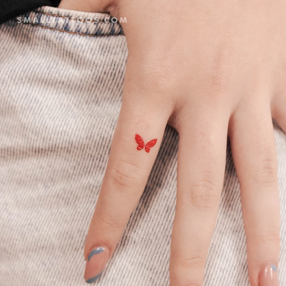 Red Minimal Butterfly Temporary Tattoo (Set Of 3)
