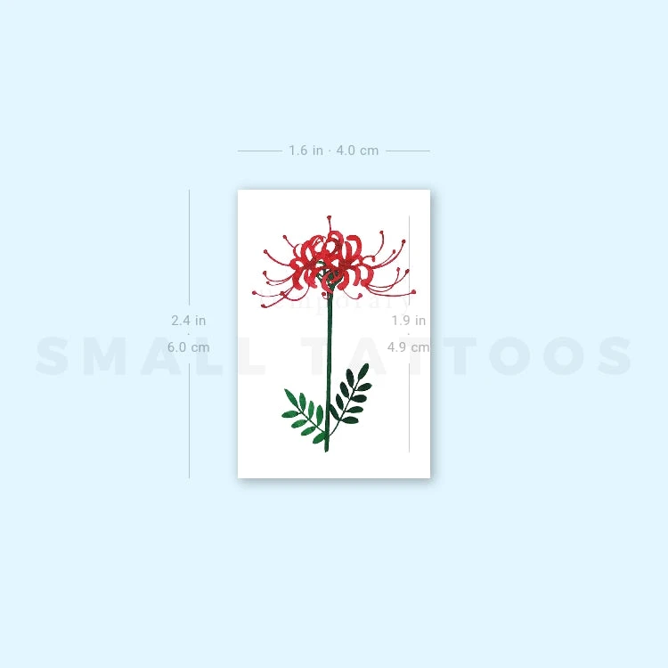 If you’re thinking about getting a tattoo to show your appreciation for this special flower, then our red spider lily temporary tattoo is a great choice for you. This design comes in a set of three, so you can try out placements or share one with a friend. Our environmentally-friendly red spider lily fake tattoo features a highly detailed depiction of a spider lily.