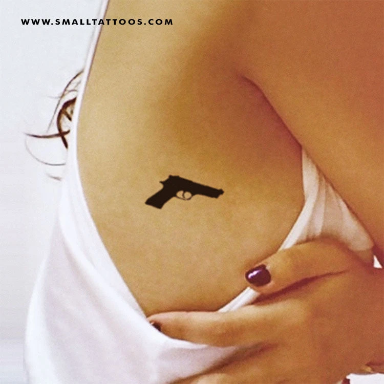 Rihanna’s gun tattoo inspired temporary tattoo. Rihanna has a gun tattoo on her right side ribcage (see picture above).