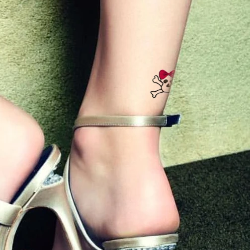 Rihanna got this small tattoo done in Miami in 2008. Placed on her left Achilles heel, the pink and red bow is said to make the notorious skull and crossbones seem more feminine and sweet.