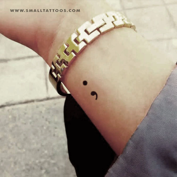 If this is a design you’re considering, our environmentally-friendly semicolon temporary tattoo will allow you to try out this size and experiment with placements before making a commitment. This is a small design, but if you prefer something even smaller, be sure to check out our small semicolon adhesive tattoo as an alternative.