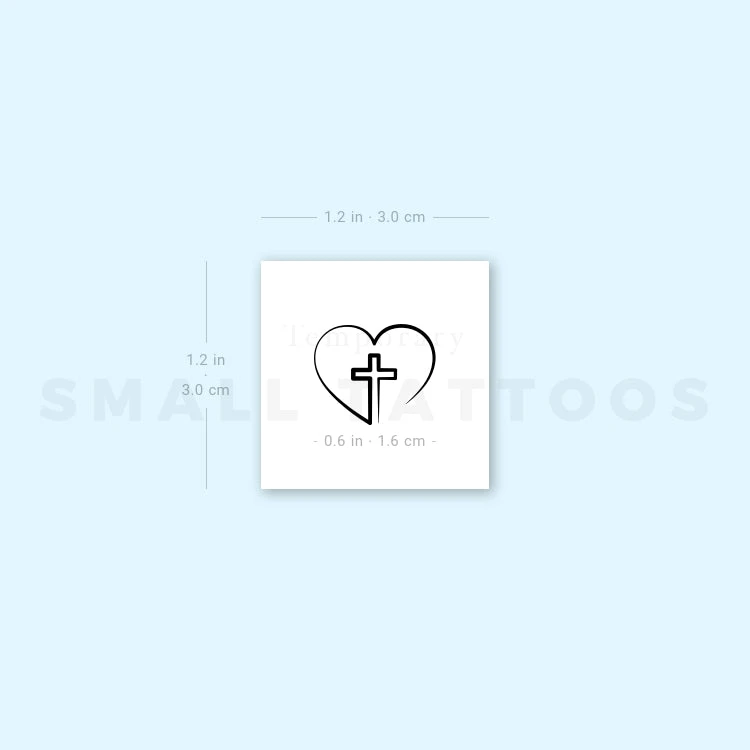 Single Line Heart And Cross Temporary Tattoo (Set Of 3)